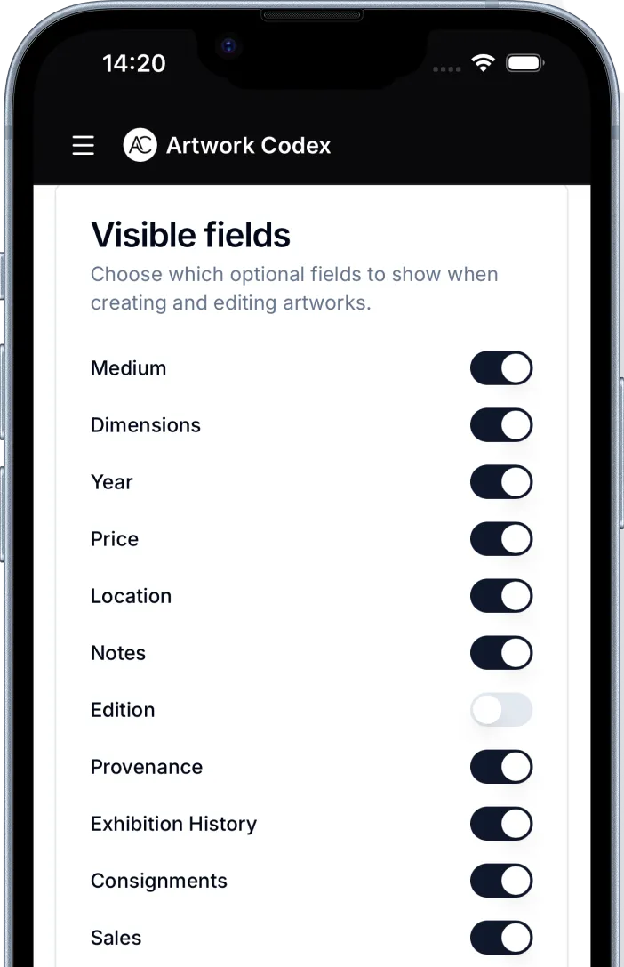 - Contacts CRM for collectors, galleries, and institutions